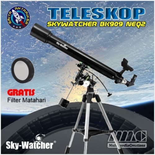 Teleskop Skywatcher Evostar 909 Eq2 adalah teleskop jenis refraktor dengan mounting Equatorial. Teleskop ini diproduksi oleh Skywatcher USA dan merupakan teleskop manual standard untuk keperluan pengamatan astronomi meliputi Bulan, Planet, Nebula, Galaksi dan termasuk pengamatan Matahari secara aman menggunakan tambahan alat Solar Filter maupun teknik proyeksi. Teleskop yang memiliki pembesaran hingga 180x ini mampu menguatkan dan membesarkan obyek yang oleh mata mungkin terlihat sangat samar dan sangat kecil. Dengan teleskop ini baik menggunakan kamera poket, DSLR maupun smartphone dapat dilakukan perekaman baik dalam bentuk foto maupun video menggunakan adapter berupa T-Ring Adapter, Universal Camera Adapter maupun smartphone adapter terhadap obyek langit tersebut. Teleskop jenis ini sangat direkomendasikan dimiliki oleh Laboratorium IPA SMP/SMA maupun Perguruan Tinggi dan merupakan teleskop standard Pelatihan Olimpiade Sains nasional bidang Astronomi dan Kebumian, para pemula yang memiliki hobi astronomi dan para astrofotografer.