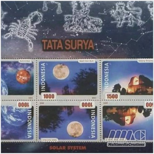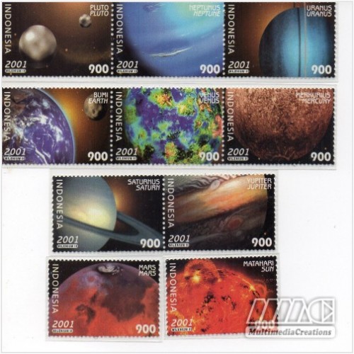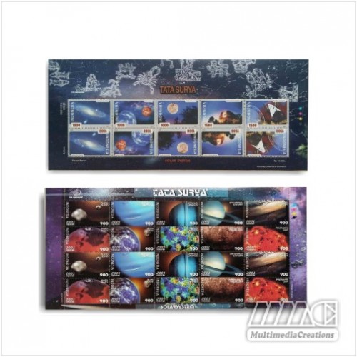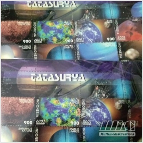 Perangko Prangko Indonesia MS Seri Tata Surya 2001 dengan ukuran 25x10 cm terdiri dari 10 perangko @ Rp. 900,-- dapat digunakan sebagai koleksi maupuin berkirim surat/barang melalui kantor POS Indonesia.
