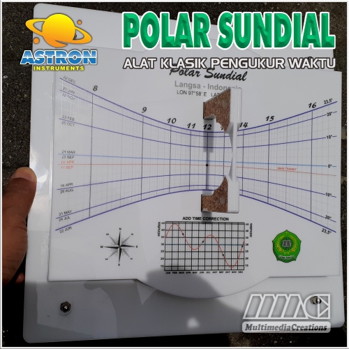 Polar Sundial adalah alat yang digunakan sebagai penentu waktu berdasarkan posisi Matahari. Alat ini bisa juga mengetahui waktu-waktu shalat, arah kiblat dan musim. Dibuat berdasarkan posisi atau lokasi pengamatan, terbuat dari bahan acrilic sehingga jika mau dipasang di luar harus dilindungi kotak kaca bening. Cara menggunakan alat ini hanya melihat bayangan gnomon akibat cahaya Matahari yang jatuh pada dialnya. Cocok untuk kelengkapan laboratorium astronomi dan falak. Barang ini memerlukan inden terlebih dahulu untuk menyesuaikan lokasi pemasangan.
