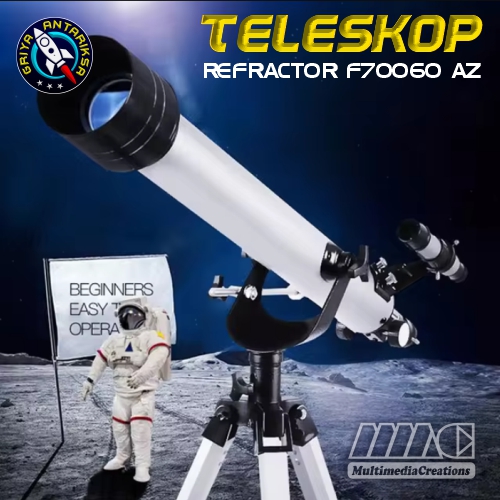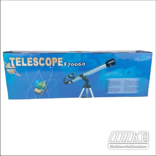 Teropong bintang dengan bukaan lensa 60 mm dan focal length 700 mm adalah alat yang sempurna untuk menggali keindahan langit malam. Dengan kekuatan optiknya, Anda akan dapat mengobservasi bintang dan bulan dengan luar biasa jelas, seolah-olah Anda sedang berada di antara bintang-bintang tersebut. Tidak hanya itu, dalam paket ini, Anda akan menemukan tripod yang terbuat dari aluminium yang kokoh, dirancang untuk menopang teleskop dengan kuat dan stabil.