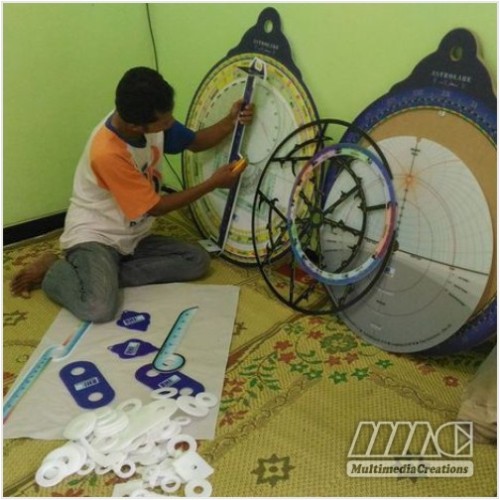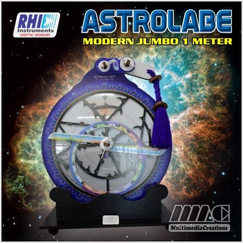 Astrolabe adalah instrumen astronomi kuno yang digunakan para astronom, navigator, dan astrolog pada era klasik. Astrolab banyak dipakai untuk menentukan lokasi dan mempreduksi posisi matahari, bulan, planet, dan bintang; menentukan waktu lokal, mengetahui letak bujur dan letak lintang; survei serta triangulasi. Pada era Islam abad pertengahan, astrolab terutama digunakan untuk mempelajari astronomi, navigasi, survei, penentu waktu, salat, serta menentukan arah kiblat. Astrolog dari Eropa menggunakan astrolab untuk horoskop. Alat yang memiliki 1001 fungsi ini baik sebagai alat hitung, alat ukur maupun tabel astronomi. . Alat ini diproduksi oleh RHI Instruments. Kami mengembangan Astrolabe Modern yang dilengkapi berbagai fitur tambahan diantaranya tabel analog Equation of Time, Deklinasi Matahari termasuk juga fitur-fitur umum yang dimiliki oleh sebuah astrolabe diantarnya Fungsi Rubuk al Mujayyab, Fungsi Jadwal Shalat, Arah Kiblat, Fungsi Pengukuran Posisi Bintang dan Matahari. Alat ini terdiri dari 2 sisi dalam pemakaian. Alat ini terbuat dari acrilic dengan teknik potong menggunakan laser serta teknik cetak langsung di atas material. Memerlukan pemesanan terlebih dahulu karena harus disesuaikan dengan Lintang dan Bujur Kota.dan Petunjuk Pemakaian serta CD terkait Astrolabe yang berisi buku-buku dan gambar tentang astrolabe. Lama pemesanan maksimal 1 minggu.