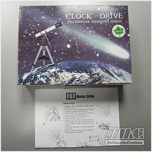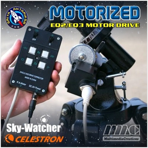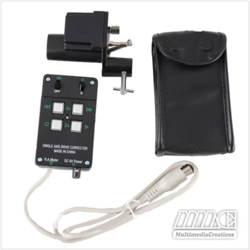 Single Axis RA Motor Drive dengan kontrol Multispeed cocok untuk Mounting EQ2 dan EQ3. Perangkat RA Motor Drive ini dapat dipasang ke teleskop Skywatcher, Celestron maupun Orion type manapun yang dilengkapi dengan dudukan ekuator EQ2 maupun EQ3. Motor Drive ini sempurna untuk astrofotografi "long exposure". Dilengkapi dengan handset kontrol kecepatan untuk pilihan pelacakan motor 1x, 2x atau 8x dari sumbu RA. Alat ini dapat dioperasikan dengan baterai maupun listrik menggunakan adaptor 9 Volt DC. Dilengkapi dengan kabel, hand control, dan wadah baterai.