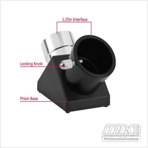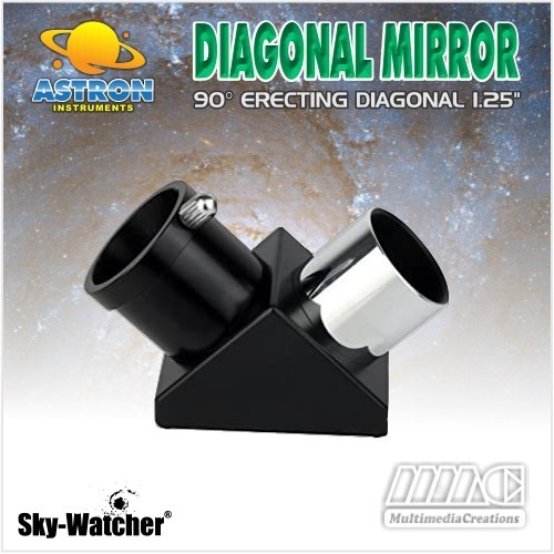 Diagonal Mirror Teleskop 1.25" adalah alat yang digunakan untuk menyambung dari teleskop ke eyepieces. Alat ini memantulan cahaya 90 derajat ke tabung utama teleskop, memungkinkan posisi melihat yang lebih nyaman saat benda langit cukup tinggi. Alat ini standar dengan berbagai model teleskop jenis apapun dengan sambungan 1.25". Diagonal mirror atau sering disebut cermin diagonal atau erecting mirror atau dielectric mirror ini menjadikan yang sulit menjadi mudah. Diagonal mirror ini juga memungkinkan pembalikan bayangan pada pengamatan landscaping atara ata-bawah sementara kiri-kanan masih terbalik. Cocok untuk teleskop : Skywatcher, Celestron, Vixen, Orion, Willian Optic, iOptron dll.